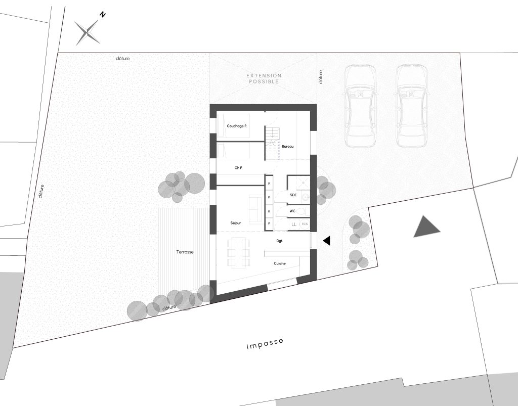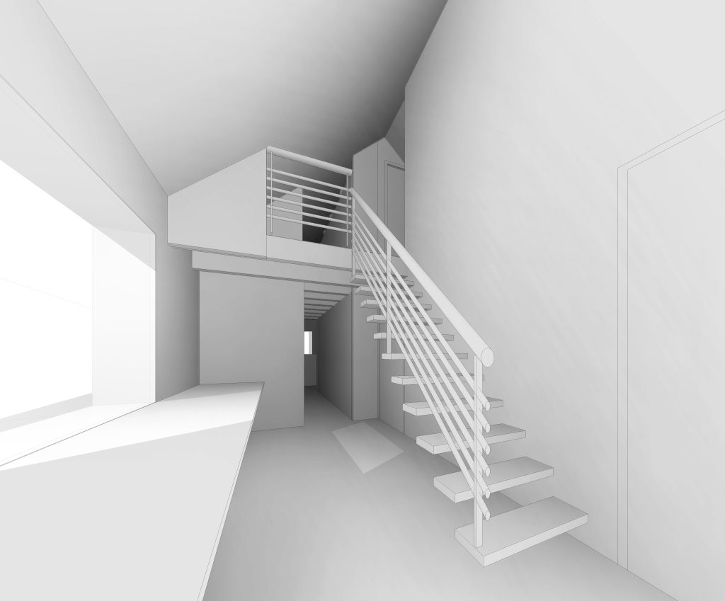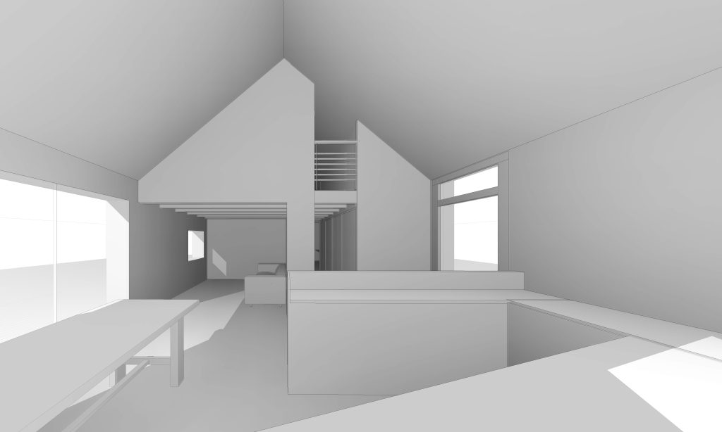 Le Projet 2 propose approximativement la même surface habitable que le Projet 1, mais les pièces de vie partagées possèdent des hauteurs sous rampants plus importantes.