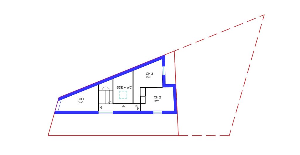 Les études d’extension et de transformation montrent rapidement que s’étendre en RDC ne permet pas d’agrandir la surface suffisamment, même avec l’achat de terrain au voisin (contrainte du PLU).