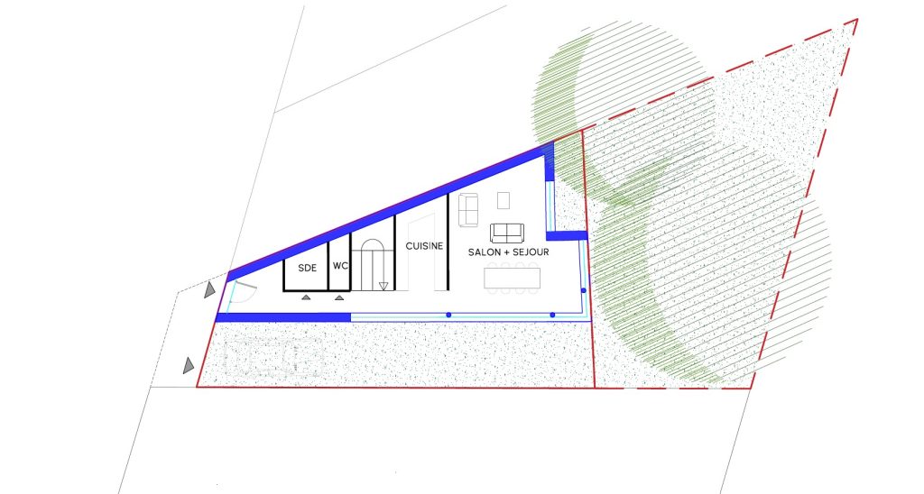 Concernant la maison, les possibilités d’implantation sont réduites mais ces contraintes sont sources de créativité et d’une proposition contemporaine intéressante.